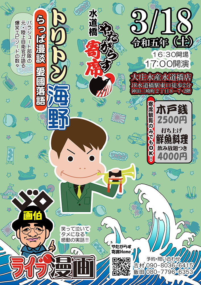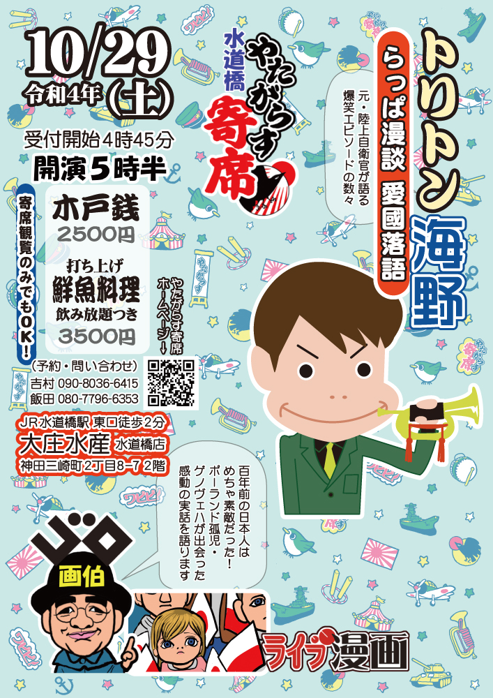 【出演 トリトン海野 (らっぱ漫談 愛国落語) / ゴロ画伯】