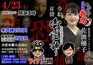 【出演 坂東忠信/佐波優子/黒田月水/ゴロ画伯】
